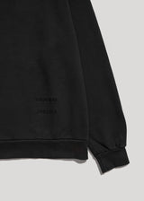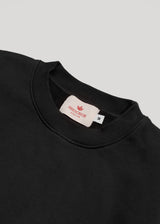 Garment dyed to a vintage black color and features a subtle embroidery on left hip.