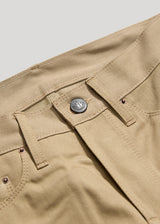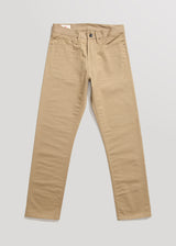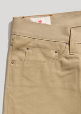 The Khaki Selvedge is a timeless 5 pocket jean made from a 9oz khaki selvedge denim from Kuroki Mills in Japan. These jeans are carefully crafted in Richmond, VA, and offer a versatile neutral khaki color that pairs well with any outfit. The careful detailing ensures durability, while the soft and lightweight twill offers easy-wearing comfort. These jeans are the perfect blend of style and comfort, making them an essential addition to any wardrobe.