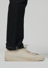 Raw 12 oz. selvedge denim from Kaihara Mills / Black warp - Black weft / 98% Cotton / 2% Elastane