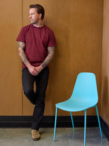 Our Standard Fit is balanced and versatile: room where you need it, clean lines where you don’t. It’s the kind of jean that works just as well at a workbench as it does at dinner. This fabric runs slightly snug due to its tight construction, so if you’re between sizes, we suggest sizing up one for the best long-term fit.
