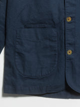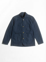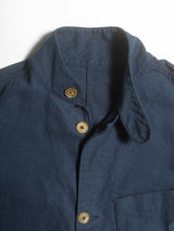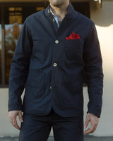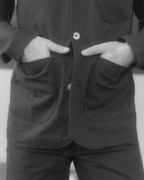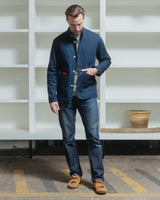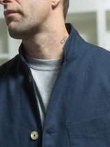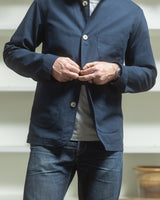 The design sits between a chore coat and a tailored layer — structured enough to replace your navy blazer, relaxed enough to reach for every day. Finished with horn buttons, three exterior pockets, two inside pockets, and a storm-tab collar that fastens neatly when needed.